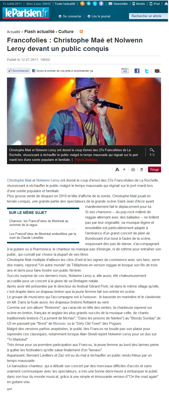 Instagram n'a pas retourné le status 200.Facebook Nolwenn Leroy